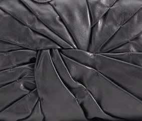 Soft leather zip top satchel with hand sticthed draping detail, silver hardware, silver logo plate on side, double top handles 6" drop, top zip closure, one inside zip pocket, canvas lining.
