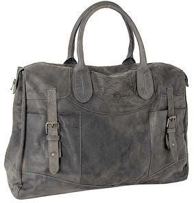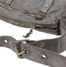 This satchel features a zip closure, a front zip pocket with buckle flap details and an adjustable shoulder strap. Made of a naturally distressed calf leather with brass hardware