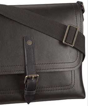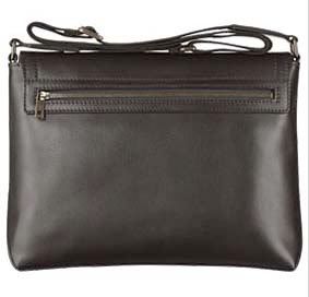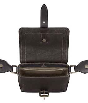 Made from supple, hand-grained Utah calf leather, polished aged brass hardware, adjustable textile shoulder strap for cross-body wear, front flap with buckle closure; exterior zipped pocket under closing flap, exterior zipped pocket at back, interior patch pocket and cell phone pocket, rustic cotton canvas lining