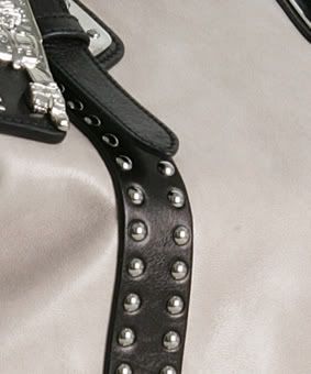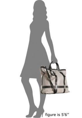 Smoke / Black ultra soft lambskin with polished silver-tone hardware and calfskin trim, logo lettering at center front, magnetic snap closure, 12½'' double plated handles with removable 35'' double buckle shoulder strap, logo jacquard lining with zip pocket, four logo engraved feet at leather trimmed base