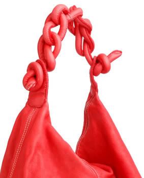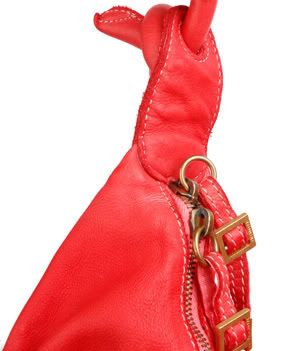 Red large bag with shoulder strap. Plaited shoulder strap. A zip fastening sits across the main opening. Pockets sit on the lining. Zip fastening. Slouchy effect