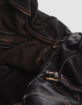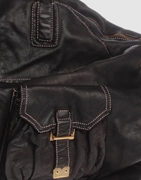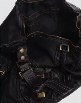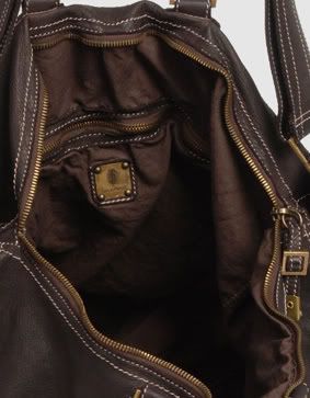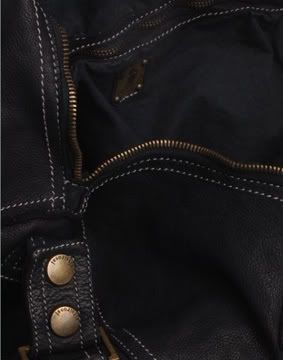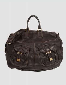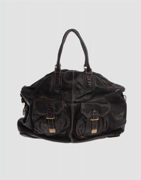 Large buffalo leather bag, zip closure, external pockets, lined interior, adjustable shoulder straps, under-arm bags, contrasting applications