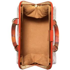 American artist Richard Prince brings his 17-color watercolor monogram canvas to the Papillon -- the icon bag of the Louis Vuitton House. Features an orange frame, animal skin handles and trim.