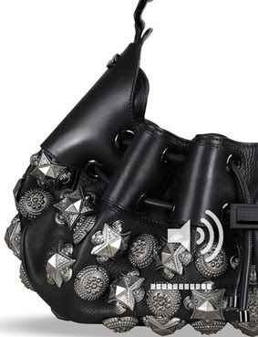 The warrior bag in leather embellished with decorative medal studs has a drawstring closure and leather panels around top. Chunky cube toggle engraved with trademark logo. Single strap with belt and buckle detail. Interior has three compartments with a central zip up compartment and two magnetic closures on either side. Central compartment has an interior zip pocket and two patch pockets. Lining with tonal equestrian knight emblem