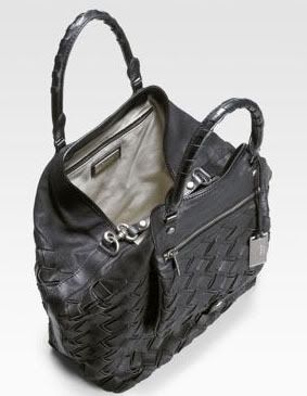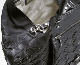 Silver-tone hardware, stud accents, exposed metal ID tag, double wrapped top handles, 5" drop, top leather snap closure, single outside zip pocket with logo pull, outside snap tab detail, inside back zip pocket, inside front slide pocket, cowhide; fabric lining
