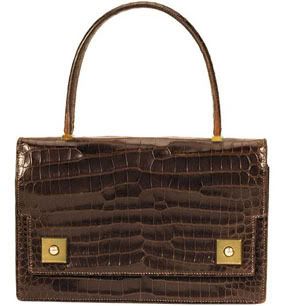 Elegance shows its exotic side in a Hermes "Piano" bag styled from genuine black crocodile with gilt metal push stud closures on the fold-over flap