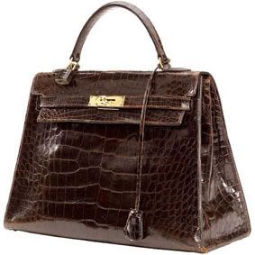 One of the original "It" bags, this Hermès "Kelly" bag is named after its most famous wearer, actress Grace Kelly. This version is made of luxurious genuine crocodile skin, and its keys come inside a detachable bag