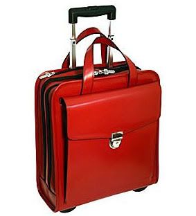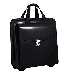 Perfect for travel, this wheeled bag features double straps, retractable handle, front organizer pocket with slide-snap flap closure, slip pocket in the back, three compartments, roomy interior to accommodate a laptop with a screen up to 15.4", inside zippered and slip pockets, accordion divider