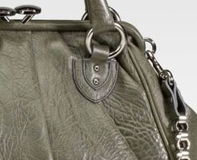 Pleating freshens a classic Marc style in lushly textured lambskin, silver-tone hardware, stud accents, double leather top handles, 5" drop, detachable chain and leather shoulder strap, 14" drop, signature kiss lock closure, one inside back wall zip pocket, canvas lining