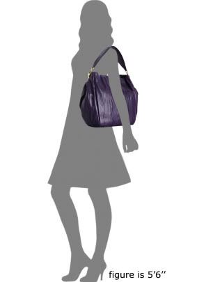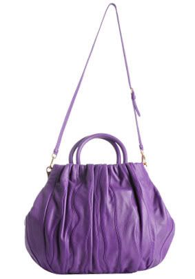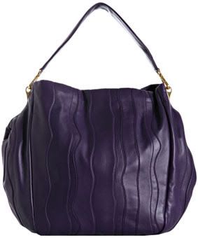 Anemone (Purple) soft wave striped lambskin with polished gold-tone hardware, logo lettering along front, hidden magnetic closure, 11'' dual leather handles with 4'' drop, removable 45'' adjustable shoulder strap, supple leather lining with interior zip and patch pocket