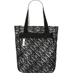 Loungefly Cassette canvas tote printed with allover silver foil cassette tape print. Open pockets on each side. Zip pockets on front and back, covered by solid panel. Solid canvas handles with silver patent vinyl lining. Open top with magnetic fastener. Interior offers open pockets, cell holder and zip pocket. Includes a large acrylic cassette tape charm. 14"W x 14"H x 5.5"D. Imported.