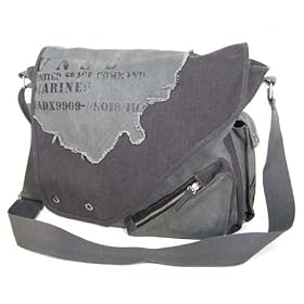 Material: canvas Size: 16"W x 14"H x 4"D Features Black and gray 16 oz heavyweight canvas messenger with UNSC screenprint. Features 2 exterior compartments, snap closure and detail on side pocket. Measures 16"W x 14"H x 4"D; adjustable shoulder strap.