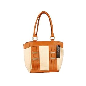 Purse features a flap closure, double handle with three sections inside. Bag measures 13 x 9 1/2 inches. Drop measures 8 inches.