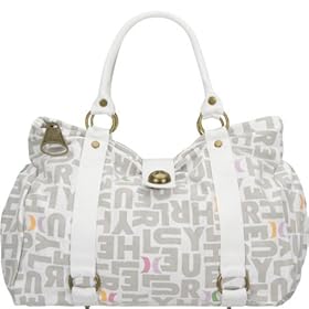 Hurley 2nd Base canvas travel tote. Features an allover "Hurley" block lettering print, interspersed with colorful Icon prints. Web handles continue down the front and back and around the bottom, separated by rings. Large metal logo button decorates the magnetic tab closure. Zip top with oversized zipper pull. Contrast interior lining, with zip, cell and open pockets. Approx dimensions: 17"W x 13"H x 7"D. Imported.