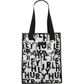 Hurley Utility tote is a canvas tote in PVC coating with allover Hurley block lettering print. Contrast binding and web handles. Two open pockets on front. Faux leather appliqué with Hurley embossing on front. Interior features open pocket, cell phone holder and zip pocket. 12"W x 5.5"D x 15"H. Imported.